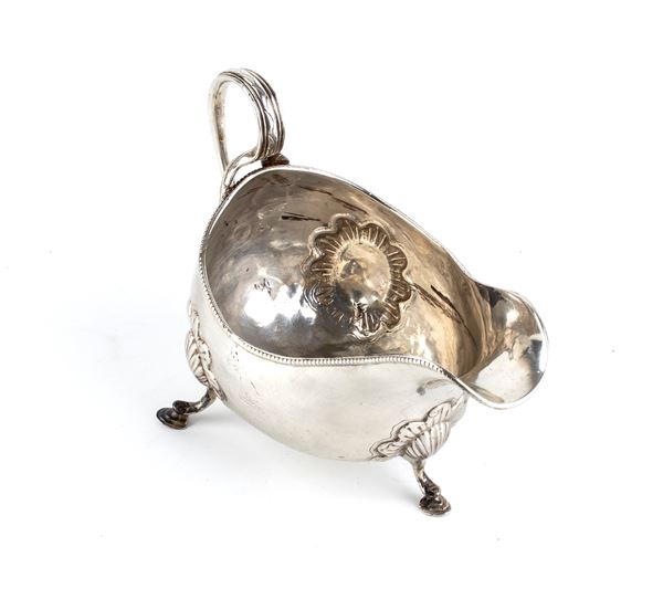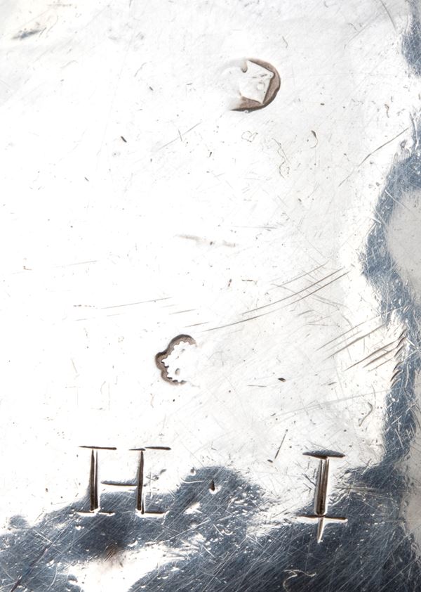 Sterling silver, hallmarked with faintly legible marks used England, very likely in the city of Sheffield, during the 18th century.