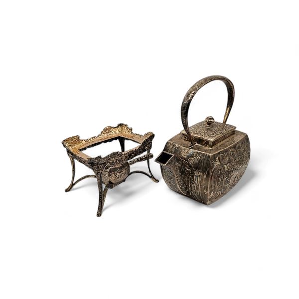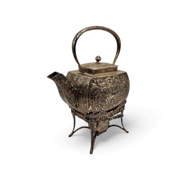 German solid silver tea kettle, Hanau (?) late 19th Century