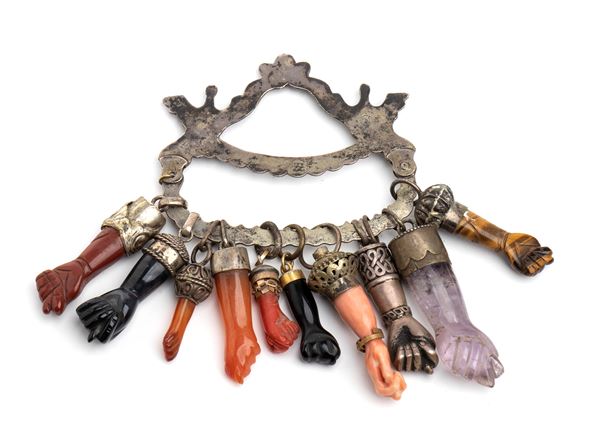 Group of silver and gemstone amulets, Southern Italy, 19th century