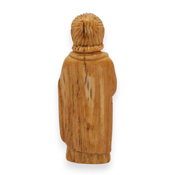 elephant ivory carving (Elephas maximus Linnaeus, 1758, or Loxodonta africana Blumenbach, 1797) carved in the round to depict Saint John the Evangelist standing, dressed in a long, draped cloak that flows down to his feet.