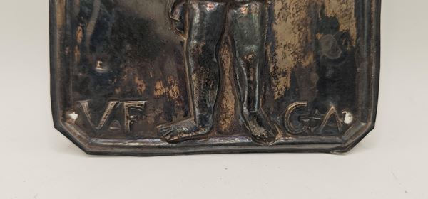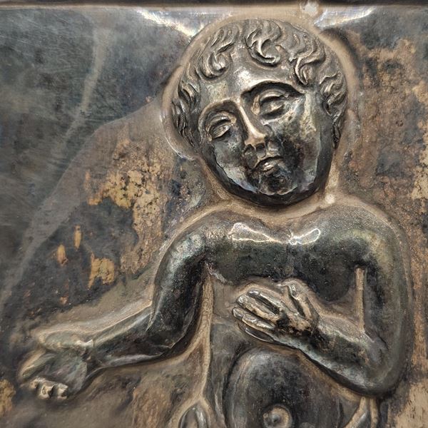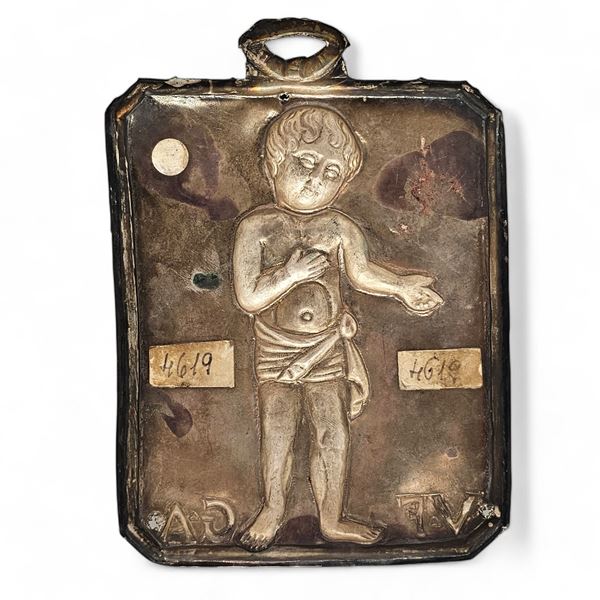 The lot in question consists of an ex-voto depicting a child. It is likely a request for the healing of an infant, who, with this depiction, sought to connect the recipient of the miracle or the one requesting the miracle to the figure of Christ, in the iconography of the Infant Jesus, a typical representation in votive tablets. These ex-votos reflect a ritual commitment from the petitioner, the one who makes the vow, who may coincide with the healed person, the one who has suffered harm, and the deity who intercedes.