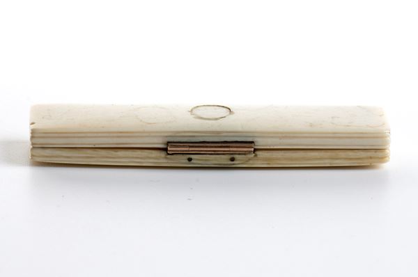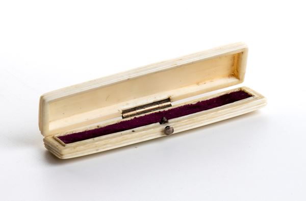 of rectangular shape made of elephant ivory (Elephas maximus Linnaeus, 1758 or Loxodonta africana Blumenbach, 1797) with a hinged lid and red velvet interior, was used as a container for moles.