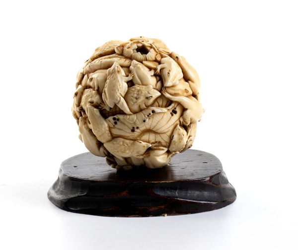Japanese ivory Daruma toad ball, Meiji period, 1868-1912