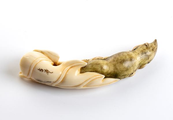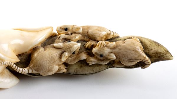Japanese ivory Okimono with rat, Meiji period, 19th century
