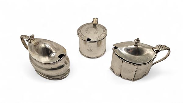 A group of 3 Georgian English sterling silver mustard pots, London, 1792-1817