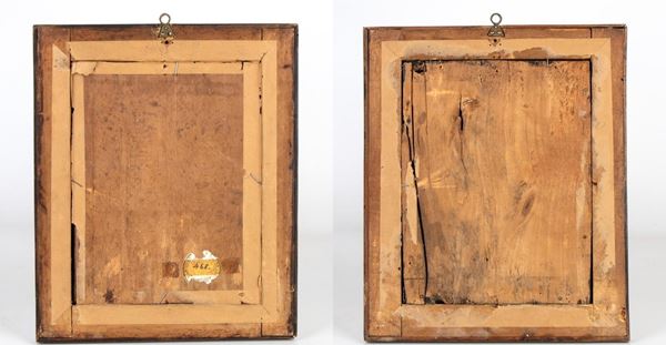 The two pieces depict polychrome modelled and painted waxes within wooden and gilded wood frames.