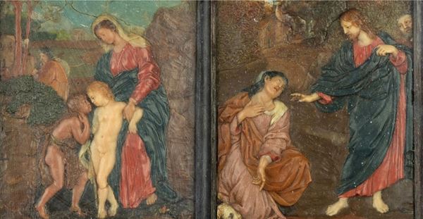 The two bas-reliefs, characterised by the elaborate scenic construction and the attention of natural and anatomical details, although unsigned, are consistent with the production of the ceroplasta Giovanni Francesco Pieri or his circle and show strong similarities with those preserved in the Museo di San Martino in Naples.