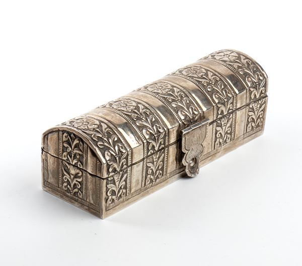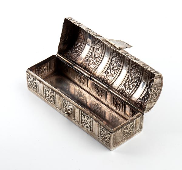 of rectangular shape, the body is decorated with alternating bands of leaf and flower motifs.