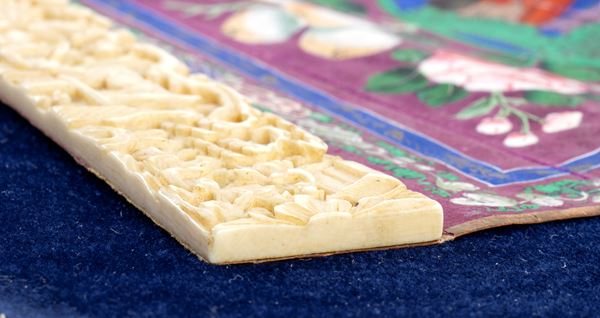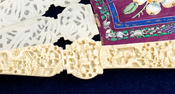 Chinese carved bone hand fan, Qing dynasty, 19th century