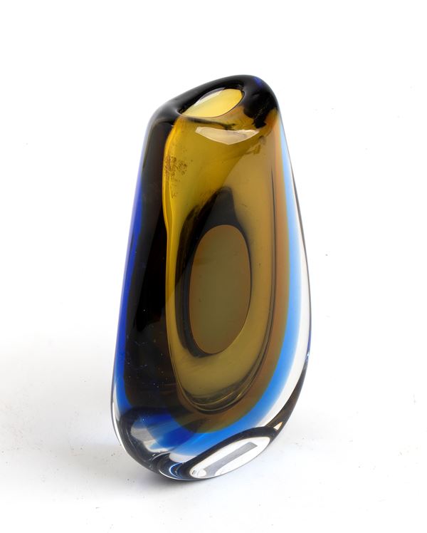 Yellow and blue submerged glass vase