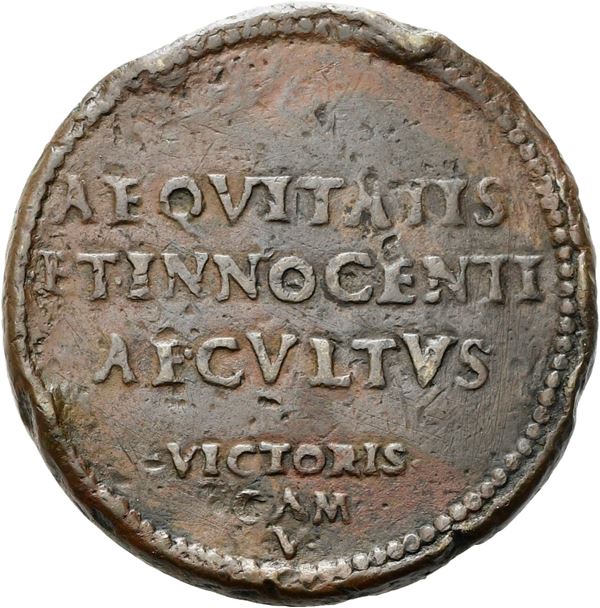 R/ AEQUITAS ET INNOCENTIAE CVLTVS VICTORIS CAM V Scritta su sei righe.