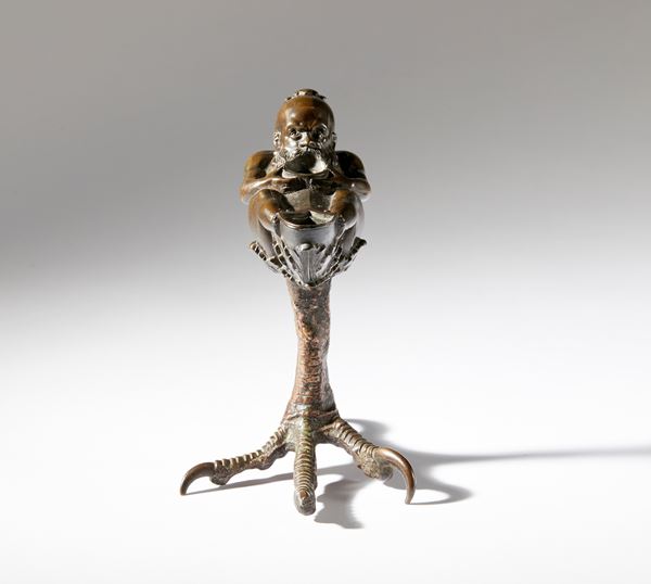 Dwarf-shaped lamp on a bird of prey's leg, Padua 16th-17th century.