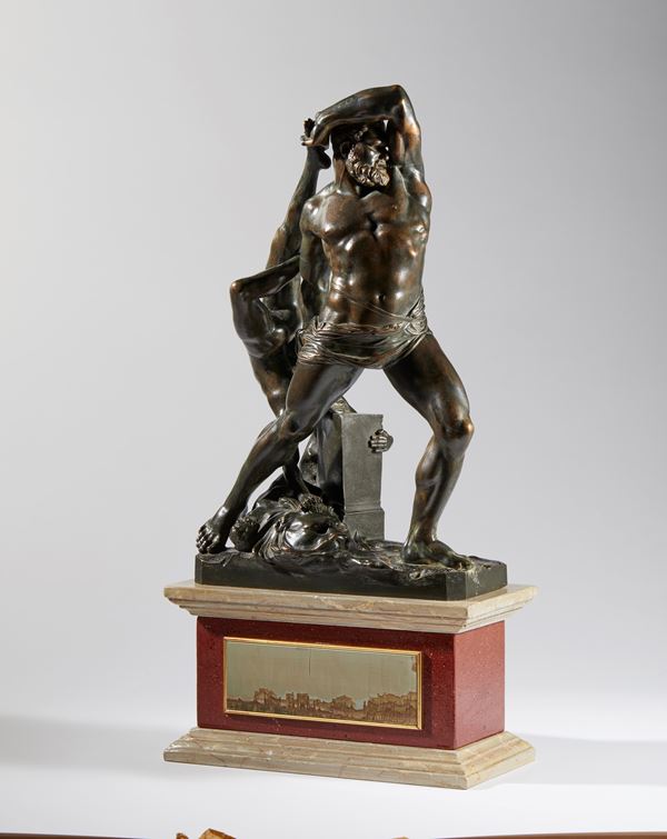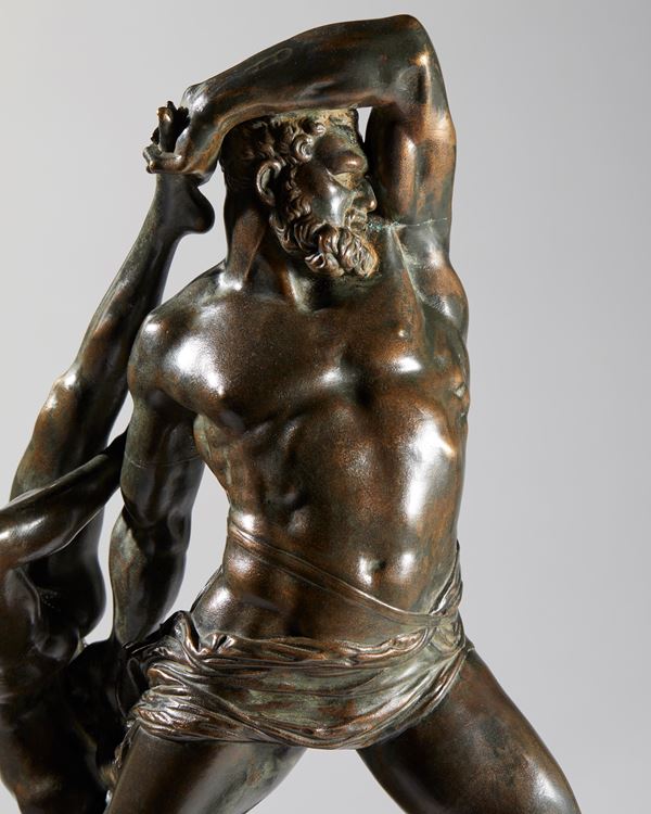 This beautiful bronze reproduces a famous sculpture by Antonio Canova, "Hercules and Lichas", now preserved in the Galleria Nazionale d'Arte Moderna in Rome, created between 1795 and 1815.