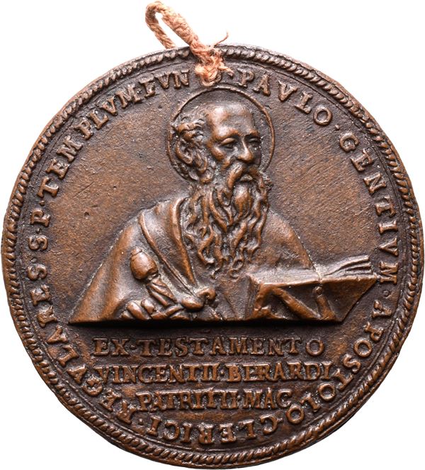 D/ PAVLO GENTIVM APOSTOLO CLERICI REGULARES S. P. TEMPLUMENTIUM San Pietro con spada e libro EX TESTAMENTO VINCENTII BERARDI PATRITII MAC