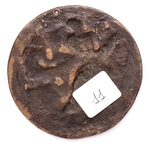 Round bronze plaque with light brown patina; 77.2 mm; 51.5 g.