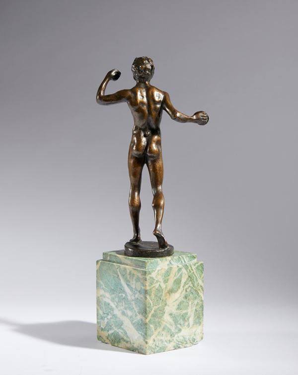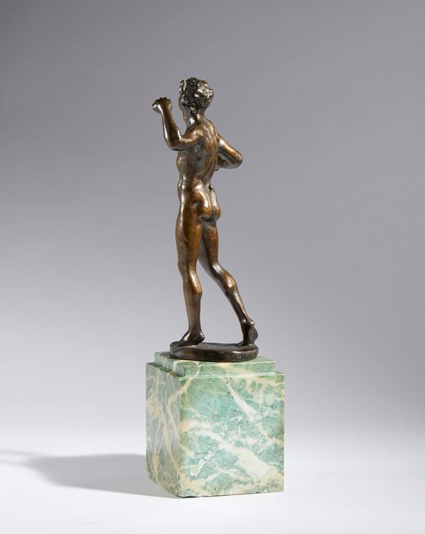 Pietro Simoni da Barga was the court sculptor of Cardinal Ferdinando de' Medici and created a series of bronze sculptures for his prestigious clients, often inspired by archaeological originals and more. About thirty of his works are now preserved in the Museo Nazionale del Bargello in Florence. These bronzes generally have an intense patina, often enriched with greenish traces, imitating the archaeological patina. In the Renaissance, in fact, there was a tendency to emulate ancient works to the point of being confused with them. Our Satyr belongs to this group preserved in the Bargello. It has a green patina with traces of fire gilding. A mutilated copy of the left hand is known in the Galleria Franchetti at Ca' d'Oro, Venice, while a few other replicas are found in other museums. The original is evidently the Bargello statuette, but the other copies, dating between the 17th and 18th centuries, are nevertheless valuable derivations. Ours in particular has a convincing and lively modeling, supported by a splendid transparent reddish patina, typical of ancient Tuscan productions, on darker traces. Furthermore, the bronze appears to be drummed to create more "movement" on the skin of the sculpture, a precious characteristic often found on truly ancient castings.