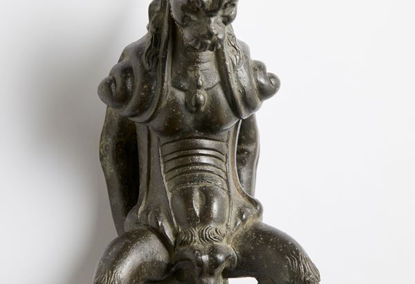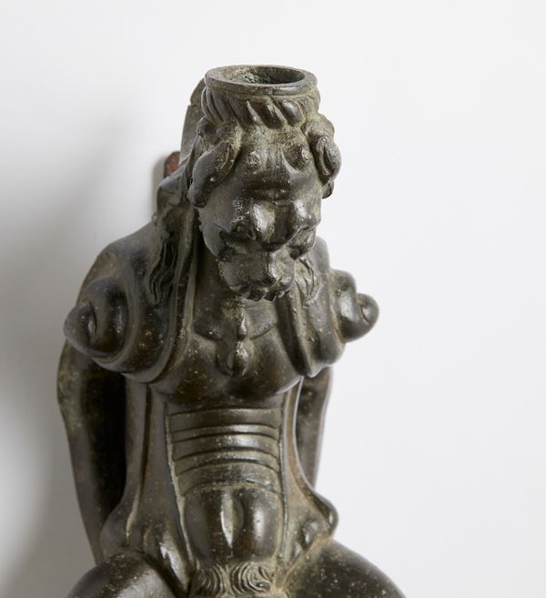 The material aspect of the casting, the patina and the modelling also denote it as an ancient work, probably from the 17th century.