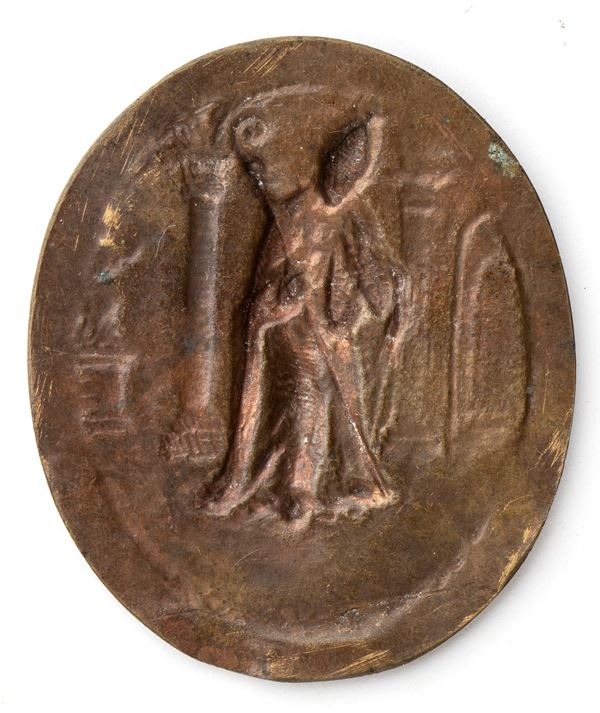 Oval plaque, brown patina mm 64.6 x 55 mm.