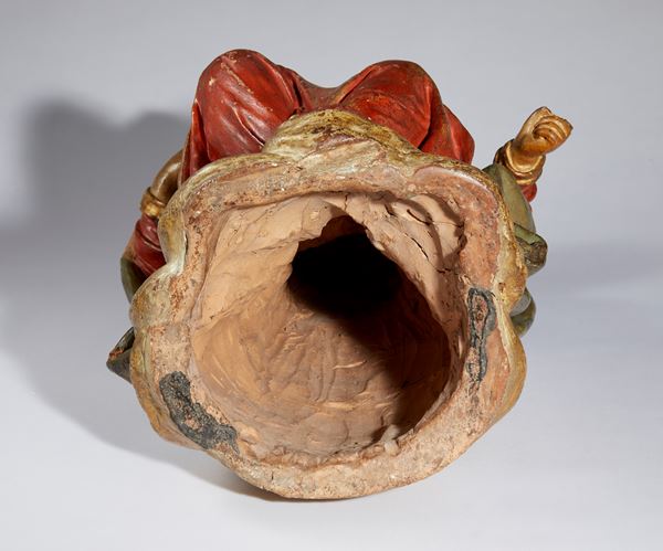 This polychrome terracotta sculpture, given its small but important dimensions, may have been intended for domestic worship.