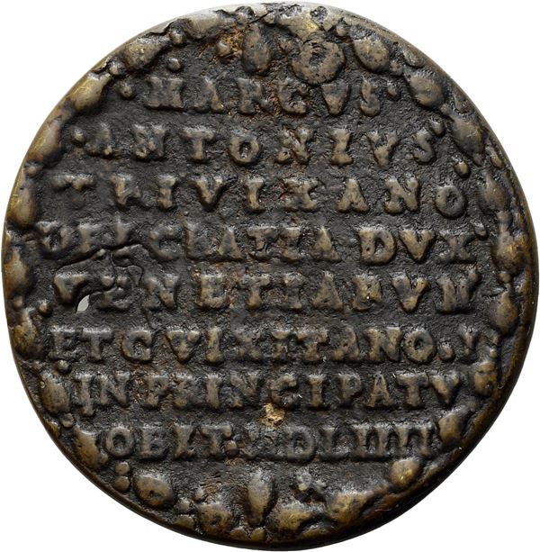 R\ MARCVS .\ ANTONIVS . \ TRIVIXANO . \ DEI GRATIA DVX \ VENETIARVM \ ETC VIXITANO. I \ IN PRINCIPATV \ OBIT. MDLIIII