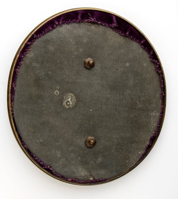 Oval bronze plaque; 132 x 113 mm.
