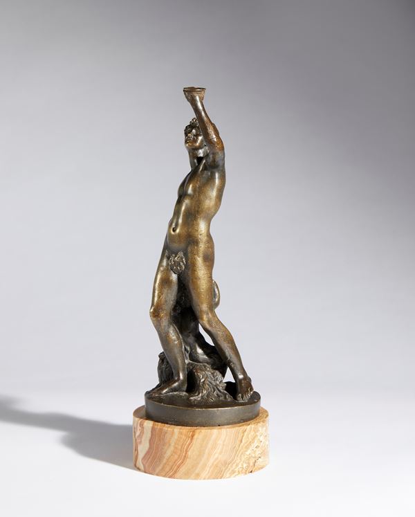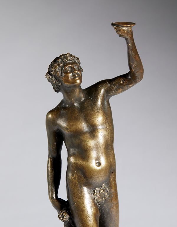 This beautiful bronze statuette is inspired by the marble culture created by Jacopo Sansovino in 1515 to decorate the gardens of Giovanni Bartolini in Florence. It was later donated to Cosimo I and placed in Palazzo Vecchio, together with works by Michelangelo, Baccio Bandinelli and Benvenuto Cellini. Our sculpture fits into the taste of the Grand Tour of the late 18th century and the early 19th century, a period in which large foundries created copies of the most famous classical Renaissance sculptures present in Italian collections. The sculpture of our Bacchus was very successful and was also translated into bronze by great sculptors; among all, we remember Massimiliano Soldani Benzi (Montevarchi, 1656-1740), who created the bronze now preserved in the Museo Nazionale del Bargello (Florence) with the variant of excluding the satyr from the composition.
