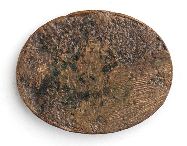 Oval bronze plaque with brown patina; mm 28.67 x 22.71.