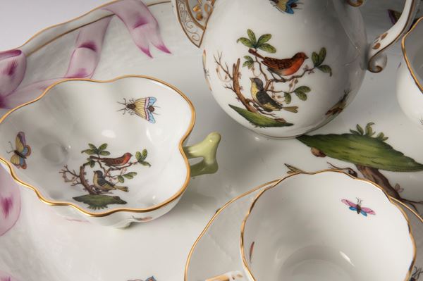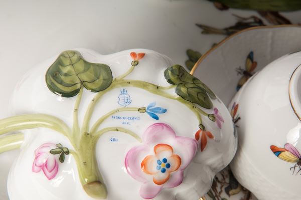 Bird and butterfly decoration on a white background, Herend manufacture