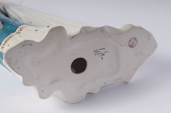 Manufacturer's signature, title, serial number and decorator's monogram (Emma Pellegrini?) in black underglaze at the base.