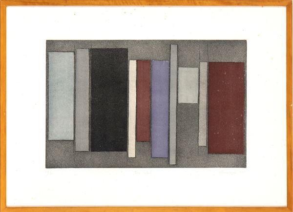 Signed and dated lower right: Scialoja, 75, titled lower center: Tre celesti, edition lower left: 28/30