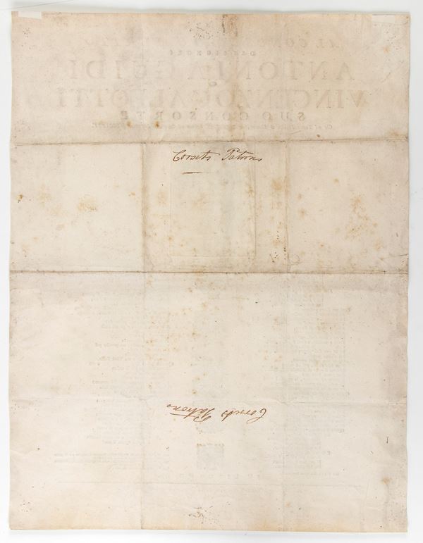 Theatrical announcement for the Carnival of 1775 at the Teatro Pubblico in Livorno. Etching, engraving, typography, 555 ร 430 mm.