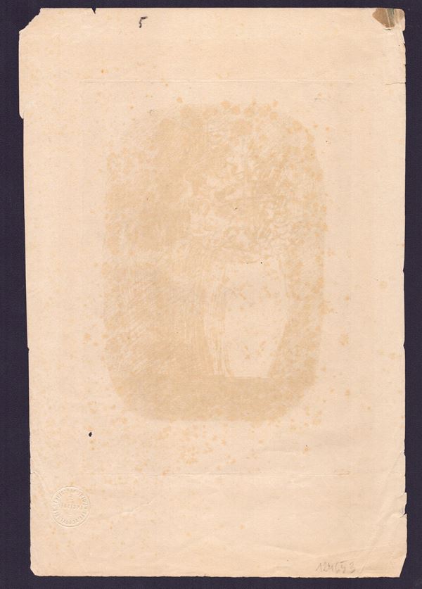 Very nice impression on thin brown paper. Blind stamp lower right "Luigi Bartolini Incisore" (Lugt 5355). Sheet with some creases and defects along the edges. A tiny hole lower right of the composition.