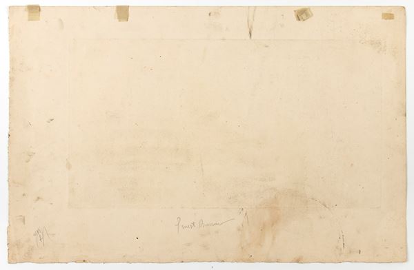 Beautiful brown ink impression on wove paper. Uniformly browned sheet, with some defects along the edges and residues of tape on the verso, but overall in very good condition.