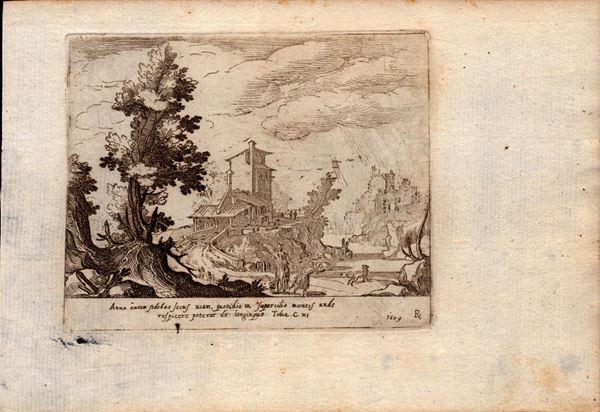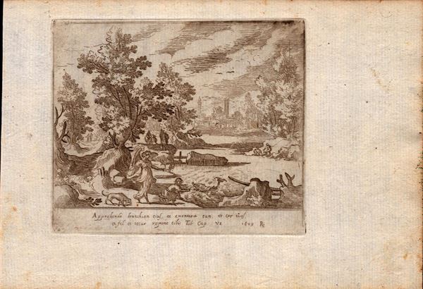 Lot of four prints. Etching, approx. 100 x 115 mm (each plate); 135 x 195 mm (each sheet). Negro Spina, "The landscape engravings of Remigio Cantagallina", in "Studies in the History of Art in Memory of Mario Rotili", Naples 1984, figs. 50-53.