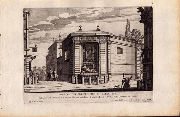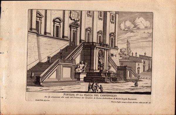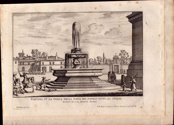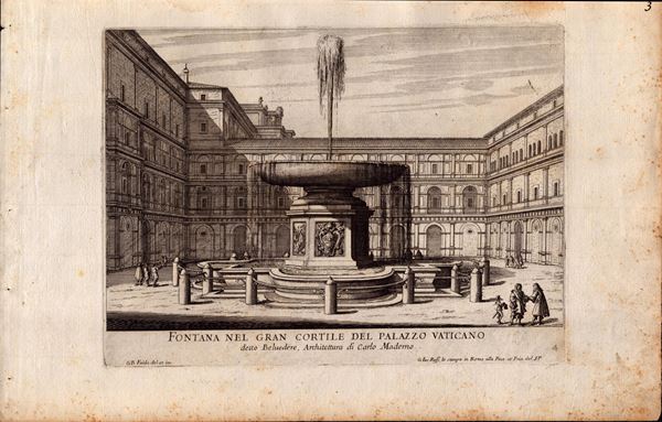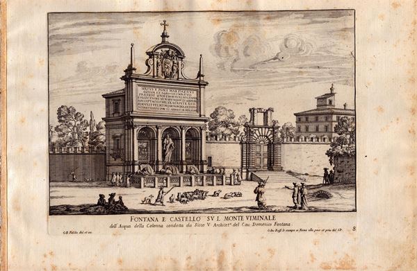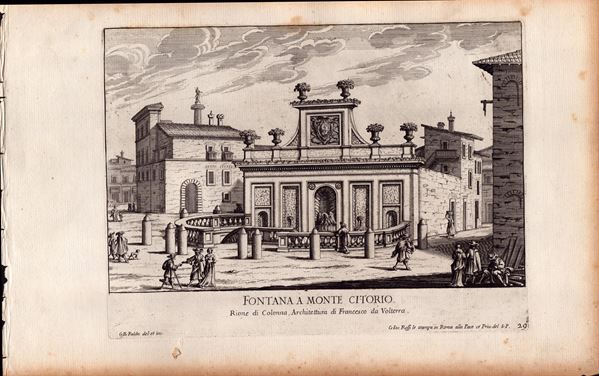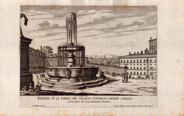 Lot of ten plates taken from various editions of the work "Le fontane di Roma nelle piazze e luoghi publici della città, con li loro prospetti, come sono al presente". Etching, approx. 285 x 415 mm (each sheet).