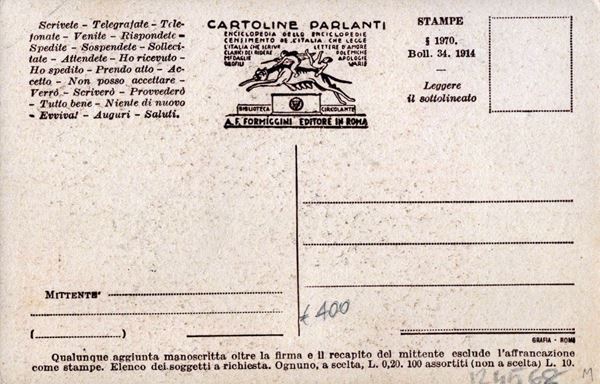 Futurist postcard, 90 x 140 mm. From the series "Cartoline Parlanti", published by Angelo Fortunato Formiggini in Rome.