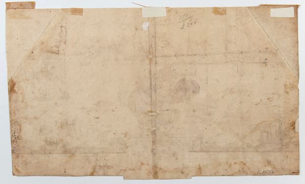 Brown and black ink on laid paper with watermark (three moons), 288 x 488 mm