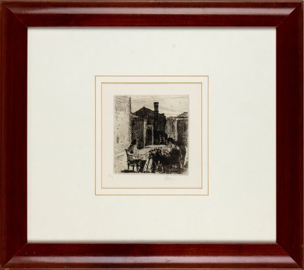 Etching, 125 x 115 mm (plate). A6 proof, printed by the author between the 21st and 22nd copy, signed in pencil at the bottom.