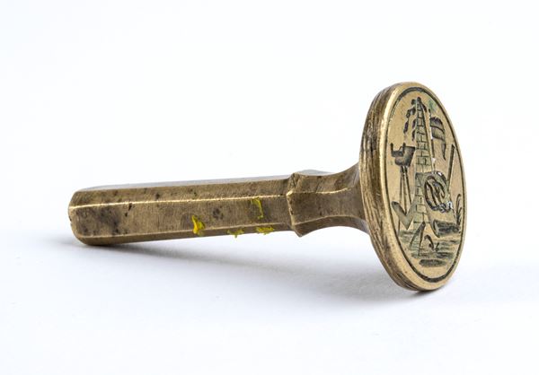 Figure: Piramide, Bandiera, Leggio Con Squadra, Compasso, Riga, Pergamena. Presenti Anche Due Lettere, Forse "I" E "D".