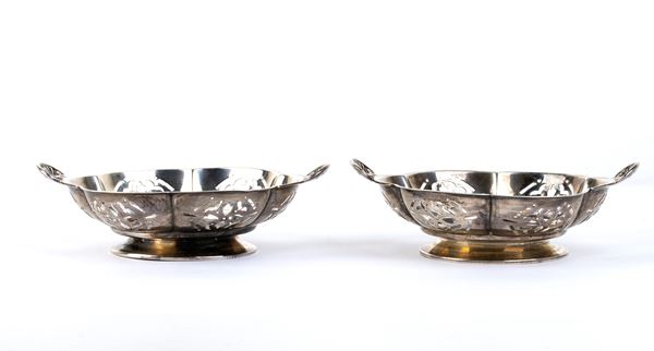 A pair of English sterling sterling silver baskets, Sheffield, 1911