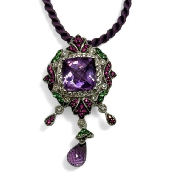 Amethyst tsavorite ruby diamond gold pendant necklace