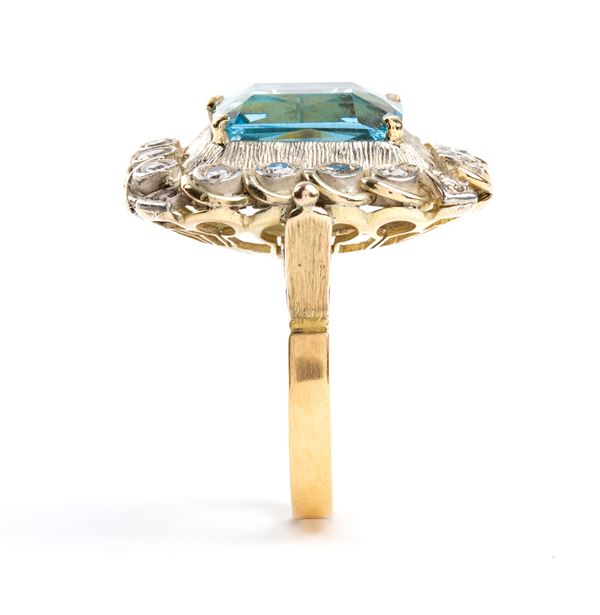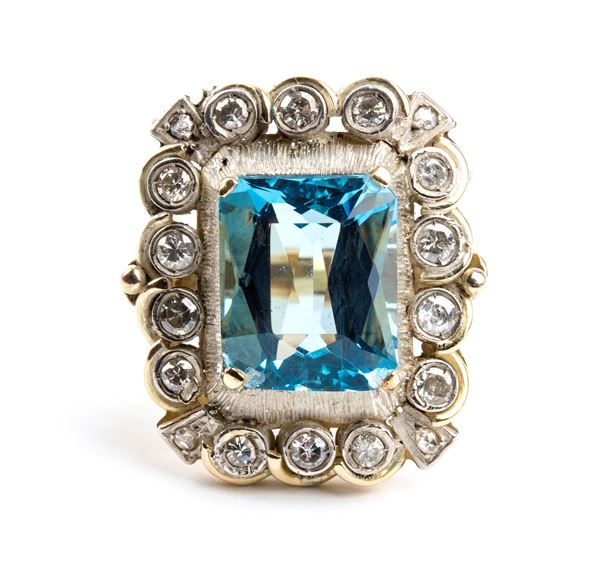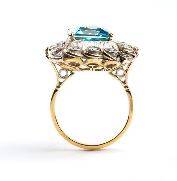 Blue topaz diamond gold silver ring, Italy, 20th century