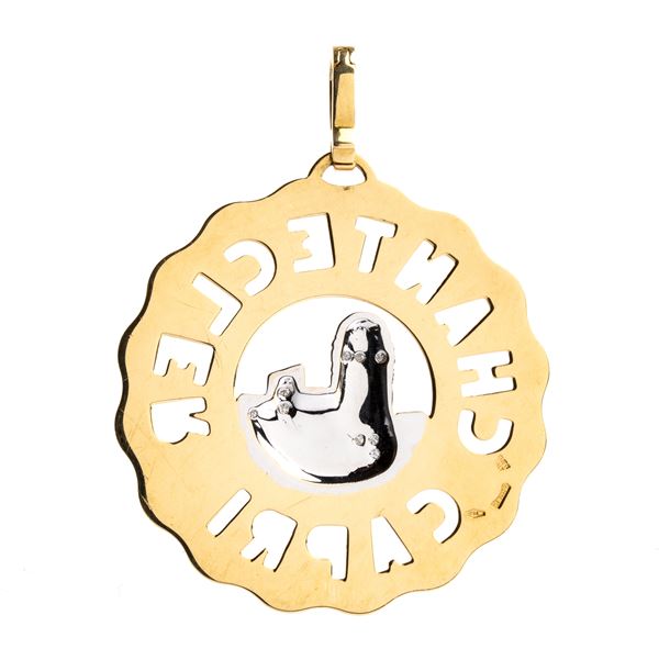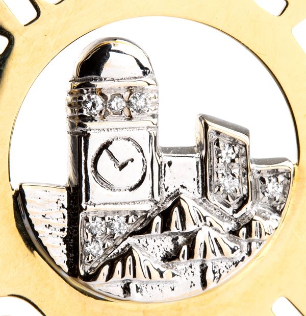 yellow and white gold, depicting a view of Capri highlighted by diamonds in the middle, between an openwork frame bearing the inscription CHANTECLER CAPRI. Signed CHANTECLER.