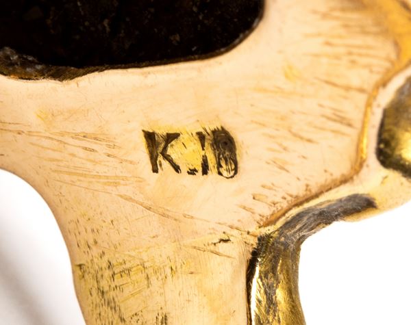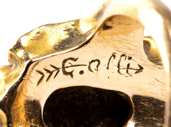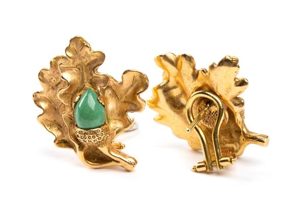 18k yellow gold, in the shape of oak leaves with turquoise acorns