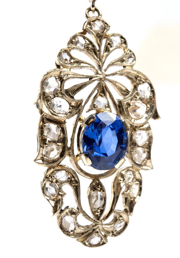 Diamonds sapphire gold drop pair of earrings