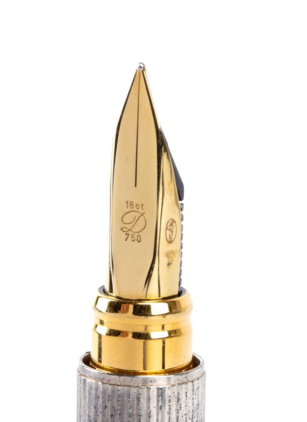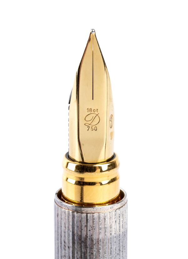 Turning the silver-coloured lid reveals the rhodium-plated 18K gold nib bearing the 18K - 750 - โDโ logo. Serial number 52BCR83. The cap bears the inscription "SJDupont, Pars".