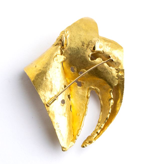 satin and wrought yellow gold sculptural brooch, Signed NINO FRANCHINA.