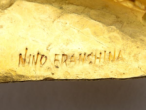 Nino Franchina was an Italian artist and sculptor who first exhibited at the age of twenty at the III Exhibition of the Fascist Union of Fine Arts of Sicily. In the 1930s, he participated in several national exhibitions, including those in Florence and Catania. He later focused on monumental constructions and increased his participation in national and international art events. In 1975, an anthological exhibition was dedicated to him at the VII Biennale of Metal Art in Gubbio.