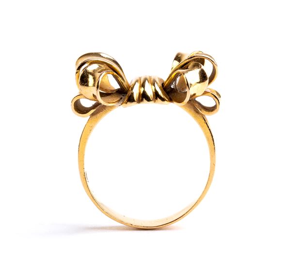 18k yellow gold, in the shape of a bow.