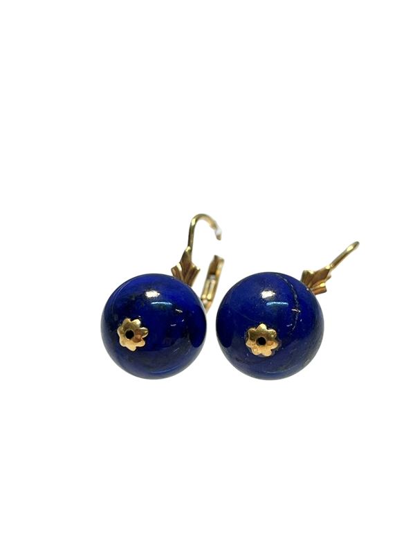 Lapis diameter: 5.5-6 mm. Hallmarked "750". Weight: 7.4 g.